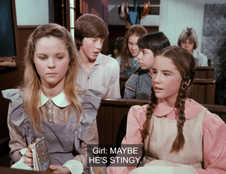 And then, in an unprecedented moment, we’re privy to a side conversation between the Kid with Very Red Hair and Not-Linda Hunt about how rich and greedy the Ingallses are. We probably don’t have to guess how they would feel about Alyssa Milano.