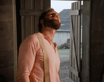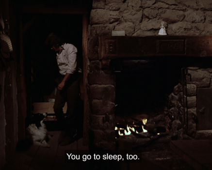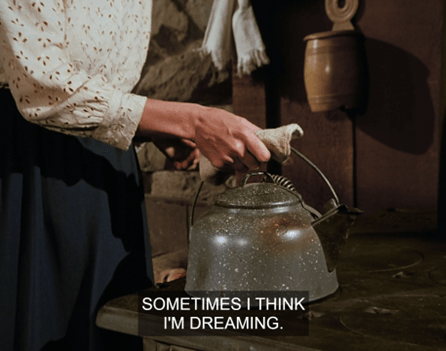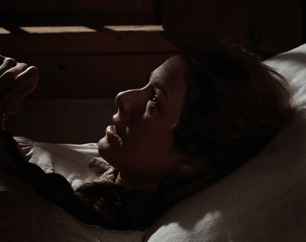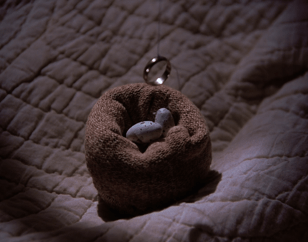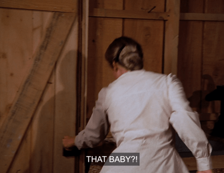 Then we cut to Caroline in the barn at night, wiping the dust off a bassinet.
