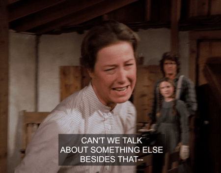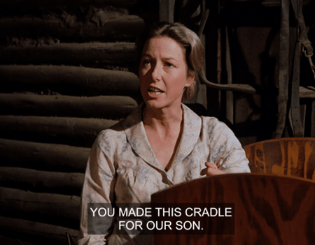“Caroline, I made the cradle for our child,” Pa fires back. I’m realizing how rarely it is they actually argue about anything. It creates an uncomfortable feeling for the viewer, not that different from how real children feel when their parents fight.