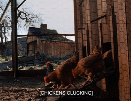 Carrie wakes up, and, taking advantage of there being no rules, as kids often do when they stay at their friends’ homes, actually goes out to the barn in the middle of the night to check on the eggs.