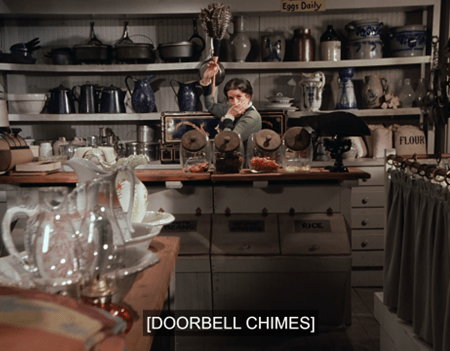 In about the laziest technical thing we’ve ever seen on this show, someone on the production team has just put a crude drawing of trees outside the kitchen window.