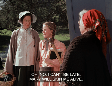 The Bead dismisses the class for recess, and we see Mary does indeed have her hair done in a new and severe style.