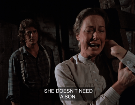 I’m not sure I agree. The fortuneteller is a red herring, but this one features searing dialogue and top-notch performances from Grassle and Landon. (Merlin Olsen, too.) The scene where Ma and Pa argue is stunning.
