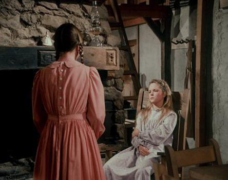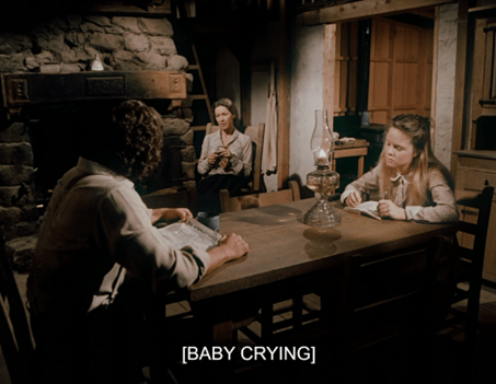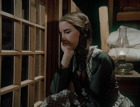 Back at home, Mary sits in Ma’s chair in her nightgown, and we see they moved a bed (Carrie’s) into the common room, presumably so Mary doesn’t have to monkey around on the ladder.