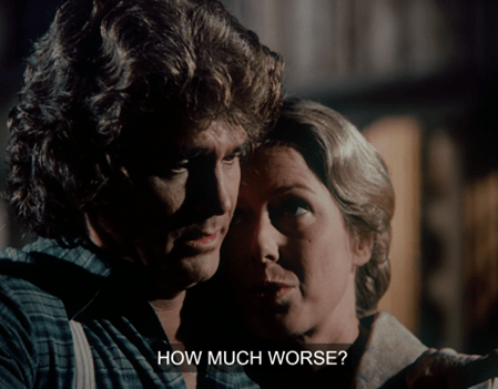 We’ll reserve our judgment until the conclusion of Part Two, but I will just say Melissa Sue Anderson is amazing in this one. See you soon.