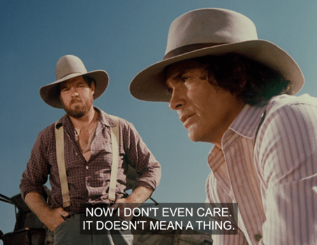 Garvey says the Mill’s closed down, but Charles doesn’t really care. He says, “Couple of weeks ago, if you’d have told me the Mill was shut down, Grange was collapsin’, I’d be the most upset man you ever saw. Now I don’t even care. It doesn’t mean a thing. I just wonder – how much of our lives are spent worrying about things that just don’t mean anything?”