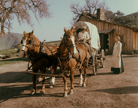 Then we see Jonathan Garvey getting the poor swaybacked Chonkies ready for the trip to Iowa. The cover on the wagon is up.