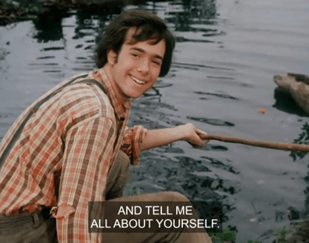 The guy scootches his ass over on the log he’s sitting on and says, “Why don’t you sit right here and tell me all about yourself.”