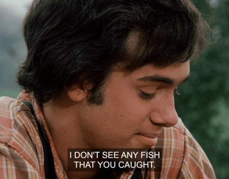 AMELIA: Do they EVER catch any fish on this show? I only see them put sticks in the water.