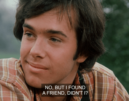 “No – but I found a friend, didn’t I?” Seth says, and smiles a dreamy smile.