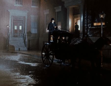 Just kidding, we’re not done. After a commercial break, we see the Kohler Hotel in the middle of a rainstorm. A woman stands on the front steps as a hansom cab drives by.