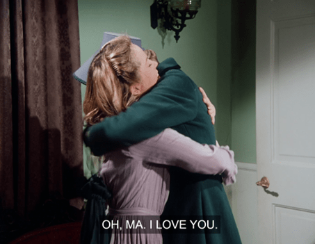 Knowing the young people want to say a romantic goodbye, Ma nudges him into the cab, which again is driven by Not-Mr. Nelson.