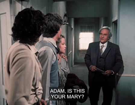 Well, this “stirring” music stops as abruptly as it started, replaced by “The Artful Albert” (Albert’s theme tune) played slowly on what I think is a synthesizer or electric organ imitating a flute sound. (I think I’m losing my ear. I feel I’ve been struggling to ID instruments on the soundtrack lately – apologies. (No cards and letters, though, please.))