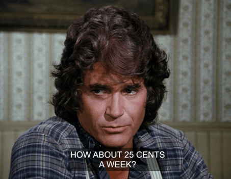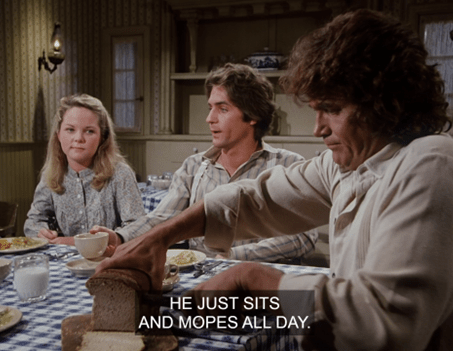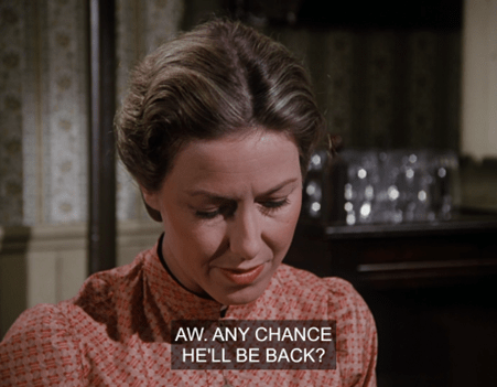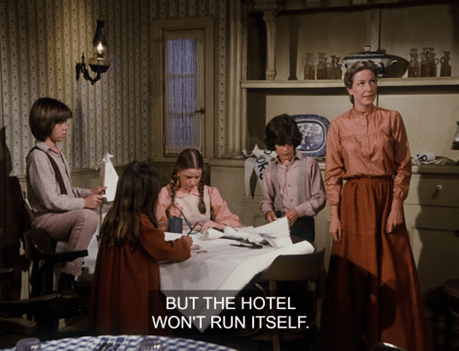Laura says it’s too bad Ma and Pa have to work on Saturday, and Ma says, “The hotel won’t run itself.” Her tone probably reflects Karen Grassle’s annoyance that her part is so shitty this week.