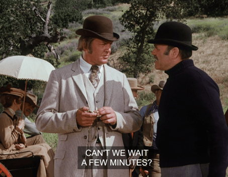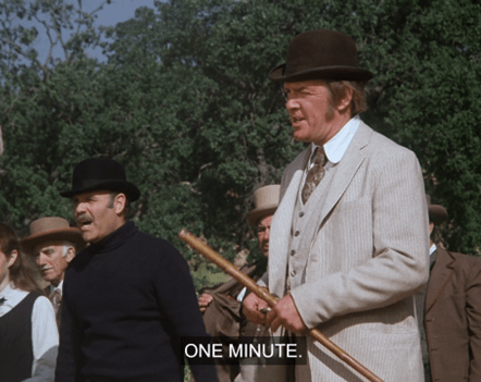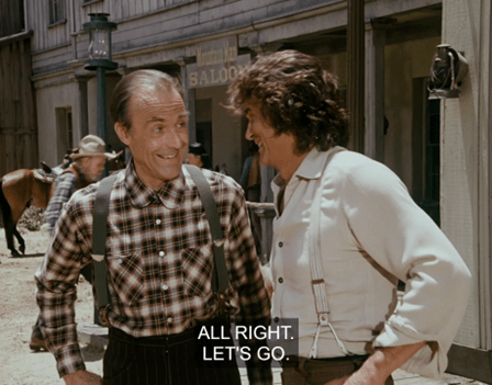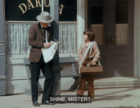 After the credits, we find ourselves at Albert’s coffin factory, as a familiar yellow-wheeled buckboard passes in the street.