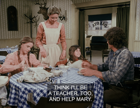 Laura tells Ma she’s thinking about becoming a teacher, just like Mary.