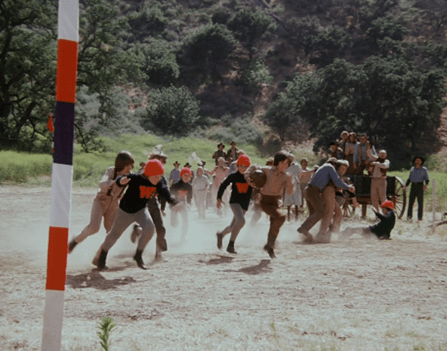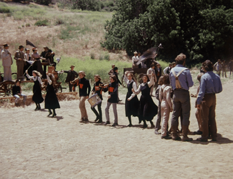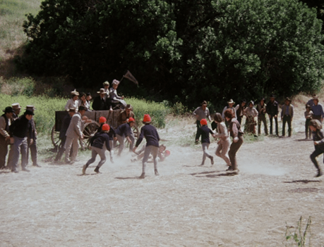 In the stands, Standish is sitting (rather oddly) with Nels. There’s a continuity error here, as we cut immediately from the panoramic shot, in which Standish and Nels are clearly standing, to the closer one, where they’re seated.