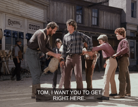 Just like Ma did with Dumb Abel’s dad Baker Makay, Adam asks Mr. Carlin to help motivate Tom to apply himself at school.