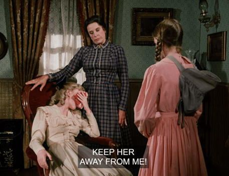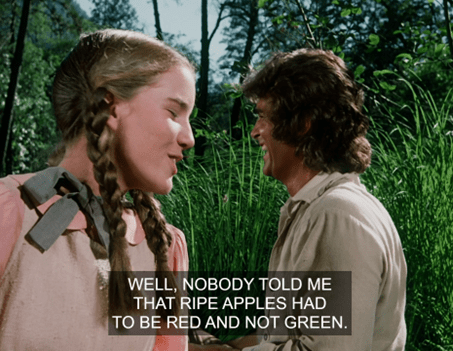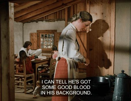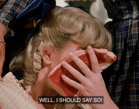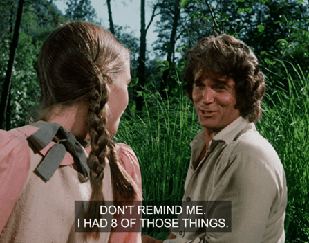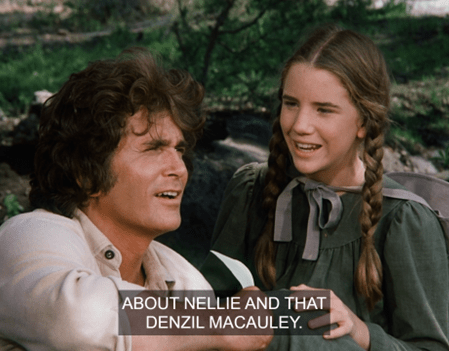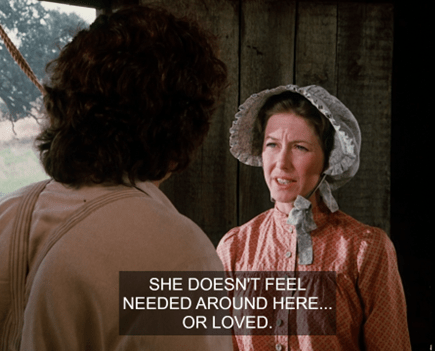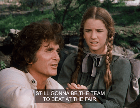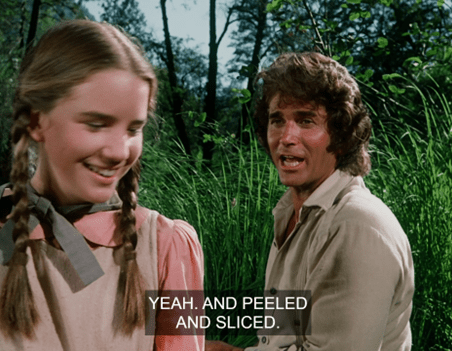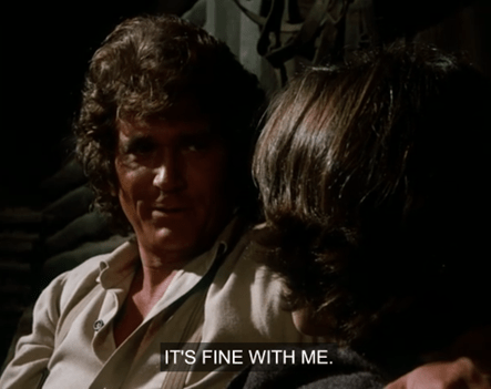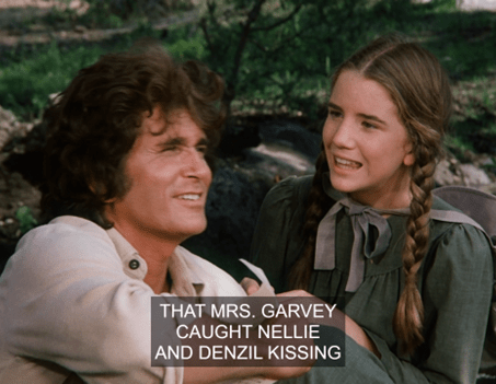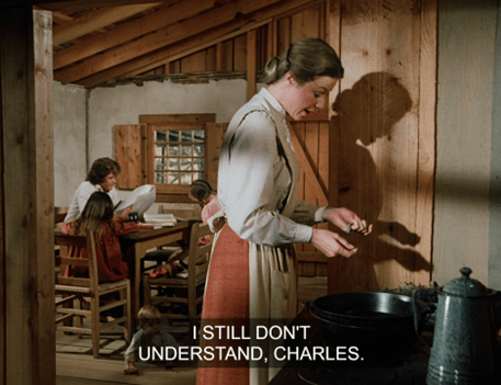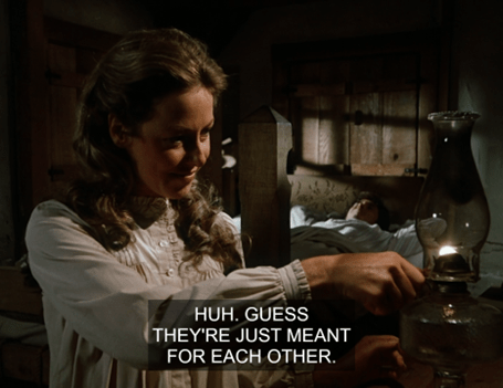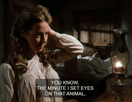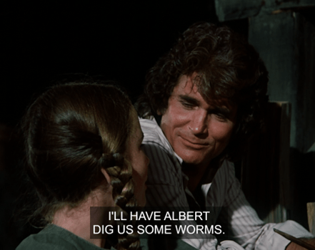 Charles jokes that she’s only seducing him because she wants him to buy her a calf too. HA! It’s a pretty naughty exchange for Little House.