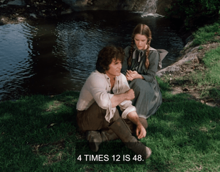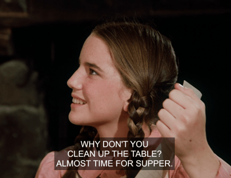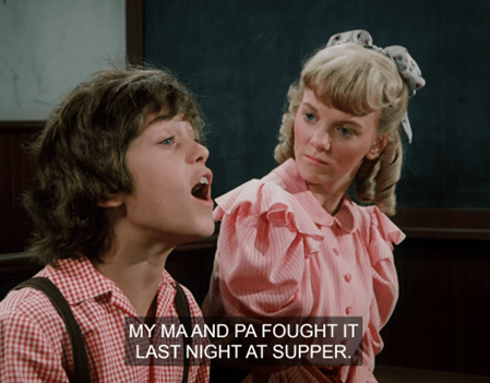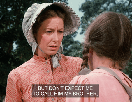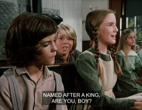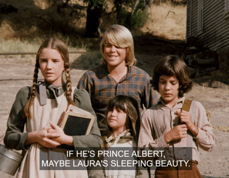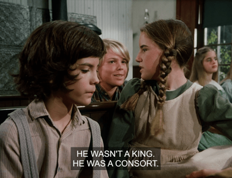 Mrs. G says they’re going to be studying British royalty. She asks who the current sovereign is, and Laura, obviously a Windsor watcher, answers Queen Victoria. (I suppose it would have been a Hanover/Saxe-Coburg-Gotha watcher in those days. Doesn’t have the same ring.)