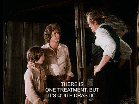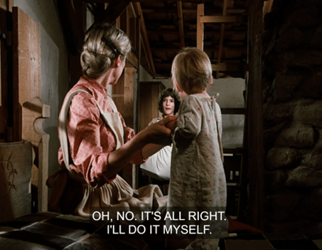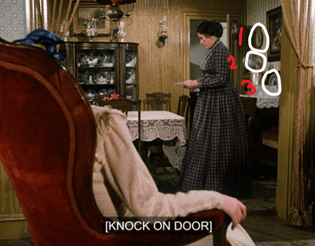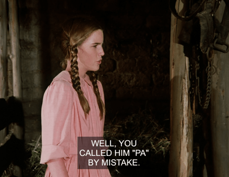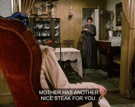 Anyways, Fagin the calf makes a horrible groaning sound, then we cut to Ma snapping beans in the kitchen whilst the rest of the family lounges in the Common Room.