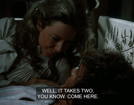 She climbs into bed, and says to Charles, “Come here.”