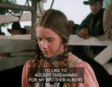 Laura admits she didn’t really raise the steer herself, saying, “I’d like to accept this award for my brother, Albert.”