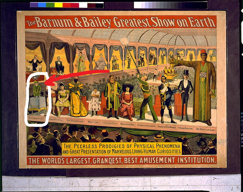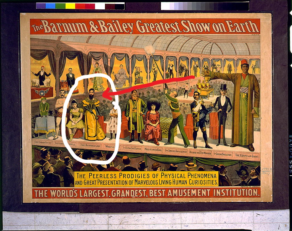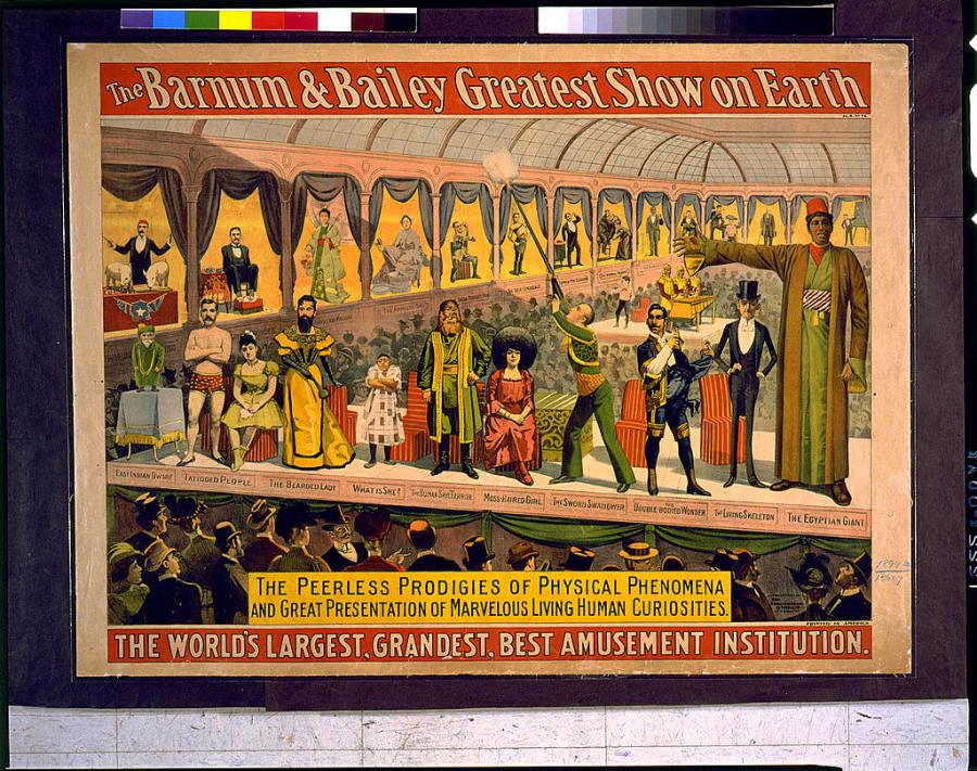 Anyways, this poster, titled The Peerless Prodigies of Physical Phenomena and Great Presentation of Marvelous Living Human Curiosities, is quite well-labeled.