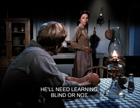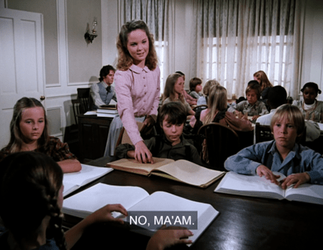I can’t remember on which occasions Pa said he didn’t care whether she went to school or not, but it’s Saturday and I’d like to get this recap out and enjoy the rest of my evening, so I’m not going to bother hunting for them. I think there were a couple of them.