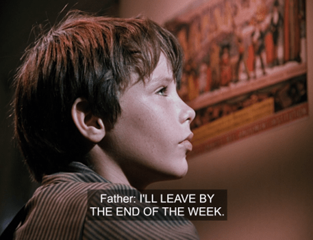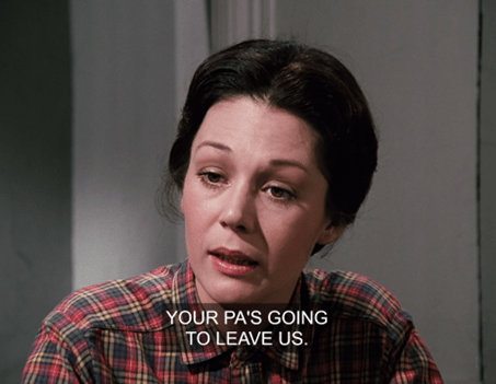 The mother, a very pretty woman wearing the tartan of Clan Buchanan (which is loud enough to induce blindness itself), tells the kid in a husky, emotional voice that his father will be leaving them soon, for good.
