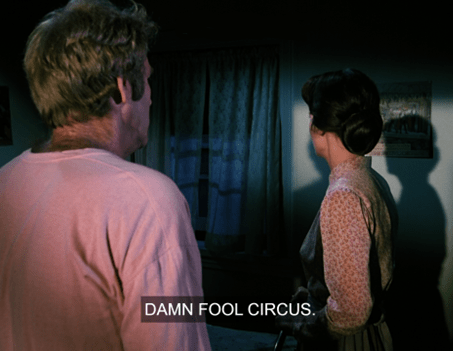 It’s hanging on a wall, and the camera moves on to another such poster, depicting more circus personnel.