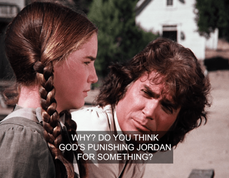 WILL [as THE MOM]: “Don’t worry, I’m sure that nice Mr. Ingalls will come do all the farmwork here for free.”