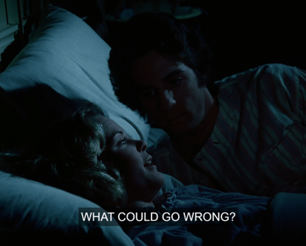 Now, I know we’re not supposed to know what happens yet, but I bet David Rose was just dying to give us a horror chord and/or slide-whistle swoop as an omen of things to come.