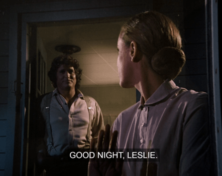 More pathetically than angrily, Harper says, “Leslie – don’t leave me.”