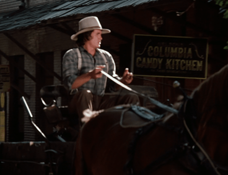 The Chonkywagon appears, and drives through the intersection of Main Street and Fulton, passing a Douglass Saloon (est. 1857) as well as a Columbia Carpenter Shop and Nelson’s Columbia Candy Kitchen.