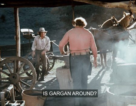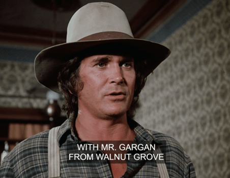 Charles says, “I believe you had some correspondence with Mr. Gargan of Walnut Grove about buying some horses.” (So that first scene was in Walnut Grove after all. Did Hans Dorfler sell the livery to this Gargan person?)