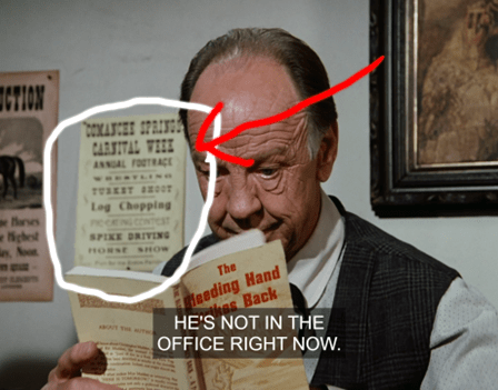 Posters on the wall advertise horse and tax auctions as well as a “marshal’s sale” of confiscated property, but I’m not sure that helps a great deal for determining the purpose of the business we’re in.