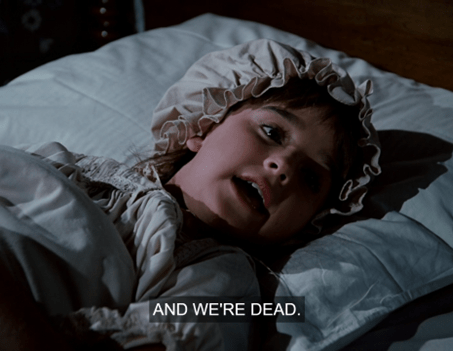 OLIVE [as VOICEOVER LAURA]: “Both kids were killed in a wagon wreck the following week. . . .”