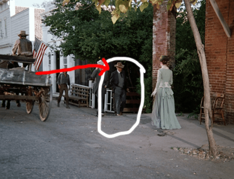 Entering the Douglass Saloon, Charles passes a sign advertising some performance by a Belle Bolton and someone named Ahmed (her accompanist?) at the Palace Theater. But I can’t make out anything more, so whether they’re musicians or comedy duo will have to remain unknown. (Belle Bolton doesn’t seem to have been a real person.)