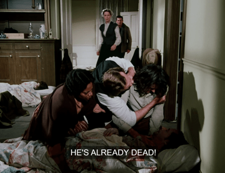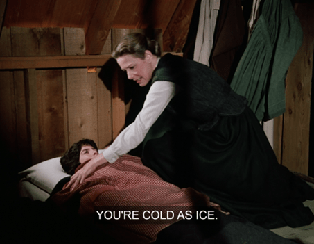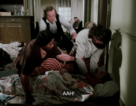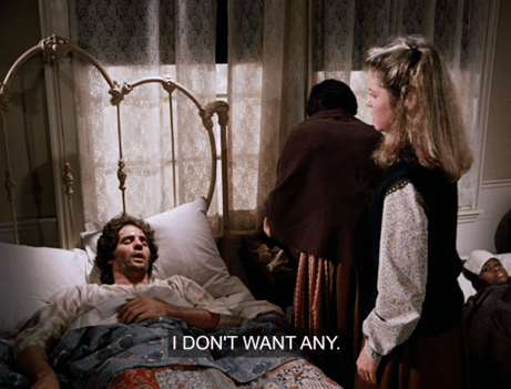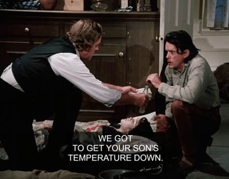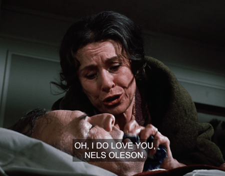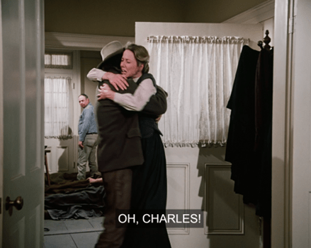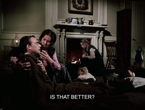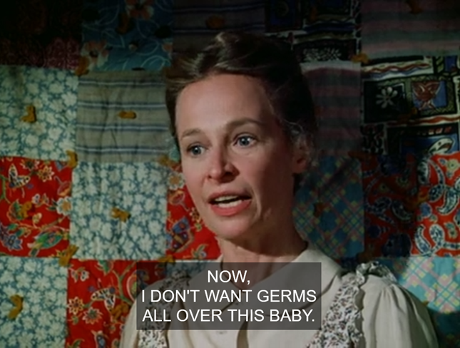 All the elements for the Ultimate Little House Story are there: dead children, dead animals, an old-timey plague, a storm, tragedy, horror, insanity, Doc Baker killing people left and right, eating things that aren’t food, Charles getting severely injured in a fight, the death of a semi-regular character, a woman standing up to her evil husband, etc., etc. Mrs. Oleson even tells Nels she loves him!