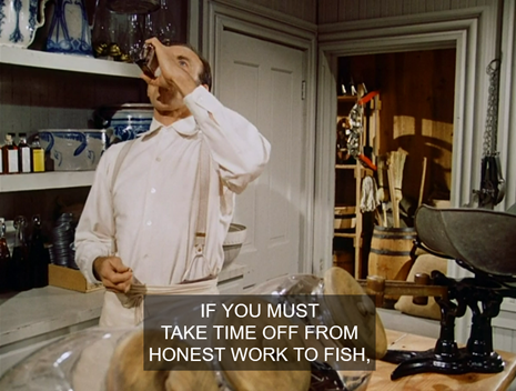 Addressing the guy as “Mr. Rawlings,” Teetotalin’ Chuck politely declines. (The actor, Richard Lockmiller, was a bluegrass singer as well as appearing on Mary Hartman, Mary Hartman, Barnaby Jones, Dallas, Falcon Crest, and in the movie Rattlers.)
