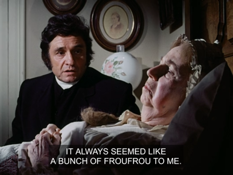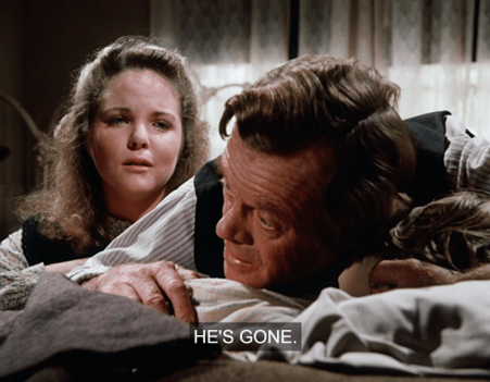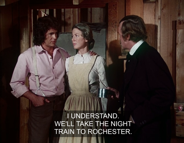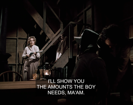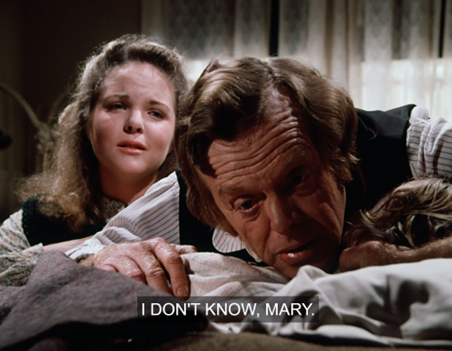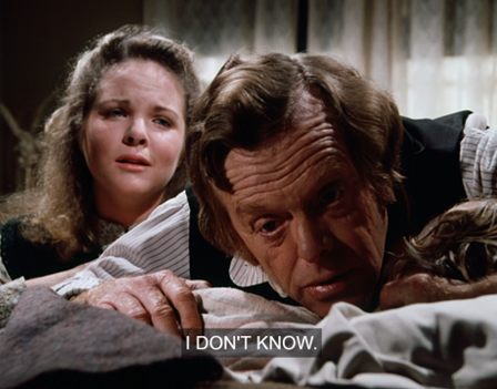 You’re so right about Little House and its horror of death. Unlike classic-Western shoot-em-ups where dozens might get killed, but no one gets hurt, Little House doesn’t treat death lightly. There’s a lot of dying, especially for a kids’ show, but the deaths always have meaning. Some characters do pay the ultimate price for their sins – the Fentons, Peterson the corn chandler in “Plague,” poor Granville Whipple – but we’re never encouraged to take pleasure in it. Little House takes pains not to allow the characters to enjoy it either; all Hugh MacGregor and his posse feel at the death of Long Elk is disappointment and frustration, and Seth Berwick is robbed of satisfaction when he realizes he’s strangling a corpse. The show disdains revenge, very strongly. Eloise Taylor realizes her rage at Laura after Ellen’s death has literally driven her mad. Joe Kagan steps down from the jury rather than convict Jud Lar[r]abee (who surely would have organized a lynch mob had the shoe been on the other foot). The vast majority of the villains are redeemed – sometimes I’d argue the show corrects too far in this direction, as when the Grovesters bend over backwards to help Jesse James escape, but even this is consistent with the show’s values. No one is truly helped by anyone else’s death, and even the deaths of animals (Bunny, Jack, Mine the dog) have weight and meaning. Practically the only exception to this is the lady in “Ma’s Holiday,” whose insanity over the death of her children is played for laughs; but nobody’s perfect.