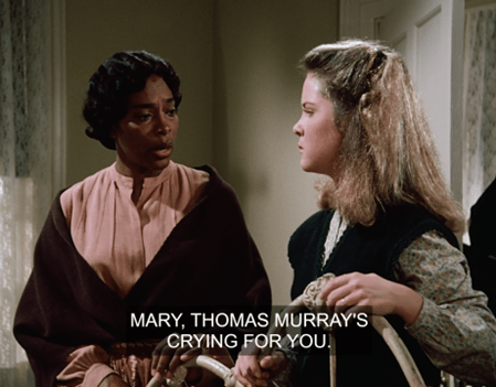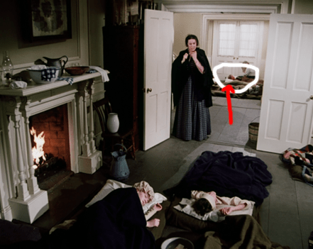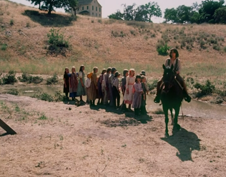 We cut to Ma hanging out at the Old Sanderson Place. She’s holding Baby Grace and watching the older kids play outside.