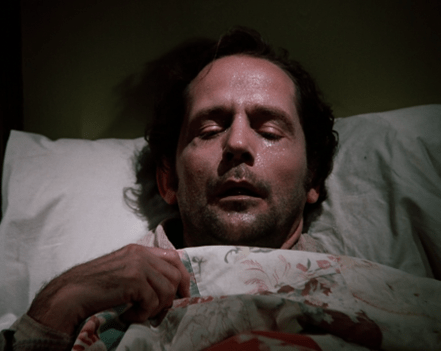 Inside, Doc is fondling the sweaty hairy chest of Adam Kendall. (Who’s also sick. Not just for fun.)