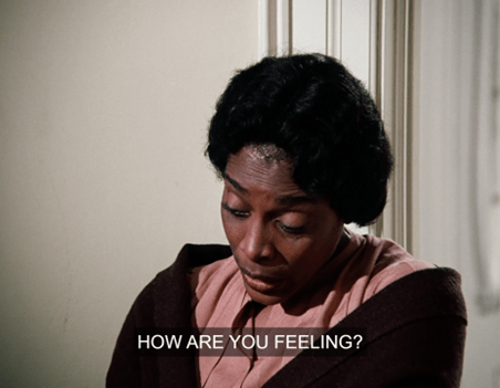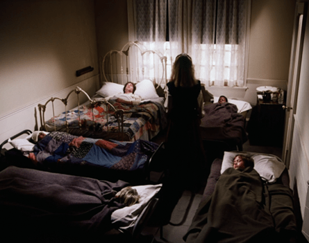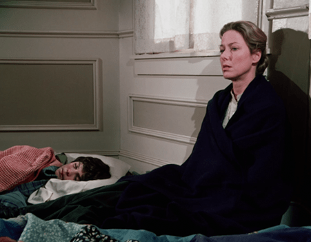 Mary stands at the foot of the bed – all business, surprise, surprise.