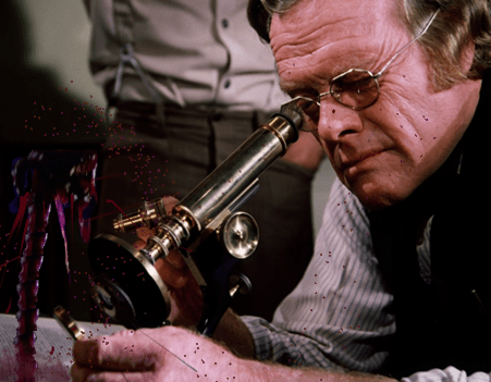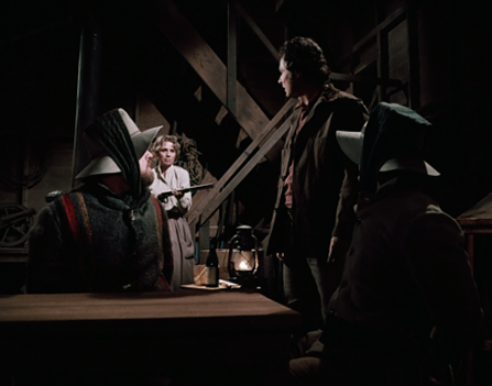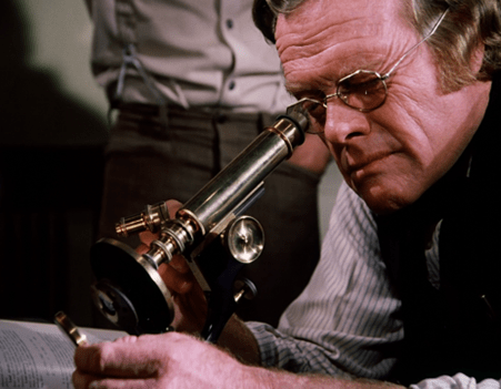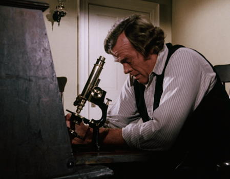 Our episode starts with scary music from David Rose – ominous drum, blatty brass, throb or heartbeat rhythm. David knows how to get the breakfast cookin’, as Mr. Edwards might say.