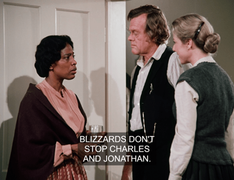 I can clearly remember my older brother laughing out loud at Caroline’s “Blizzards don’t stop Charles and Jonathan.” Enough that the line was later sometimes repeated whenever it seemed appropriate. Something appears too difficult? “Blizzards don’t stop Charles and Jonathan!”