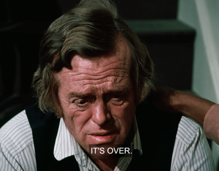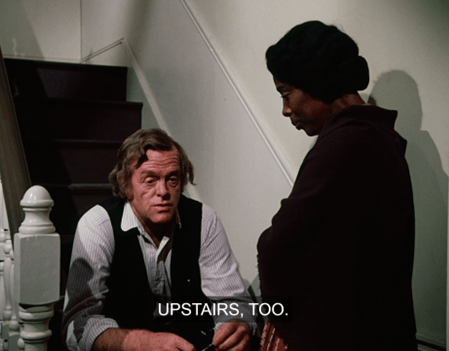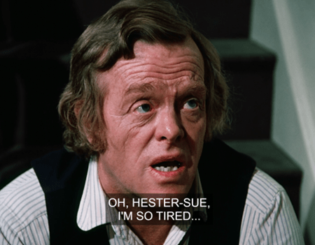 Doc slowly descends the stairs, then sits down, exhausted. Hester-Sue says the worst seems to be over, and his voice cracks when he replies.