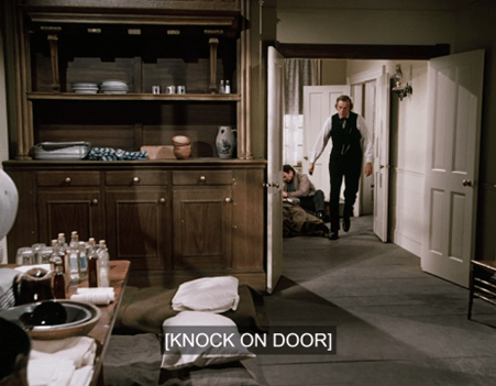 There’s a knock at the door – it’s Garth (Alice greets him as “Mr. Fenton”), who has come to see if they’d like to buy some meat. (Older readers may recall door-to-door salesmen offering wares like vacuum cleaners, men’s fragrances, and clearance-sale mutton.)