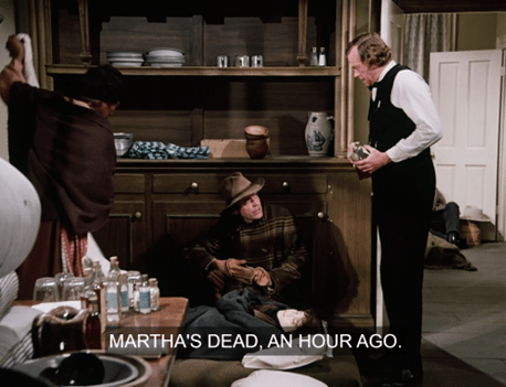 Nels tells Harriet he’s sick of taking his damn medicine. “I’d much rather have some more sherry!” he says. Ha! Nels’s not-so-secret love of the sauce is a thread that pleases again and again.